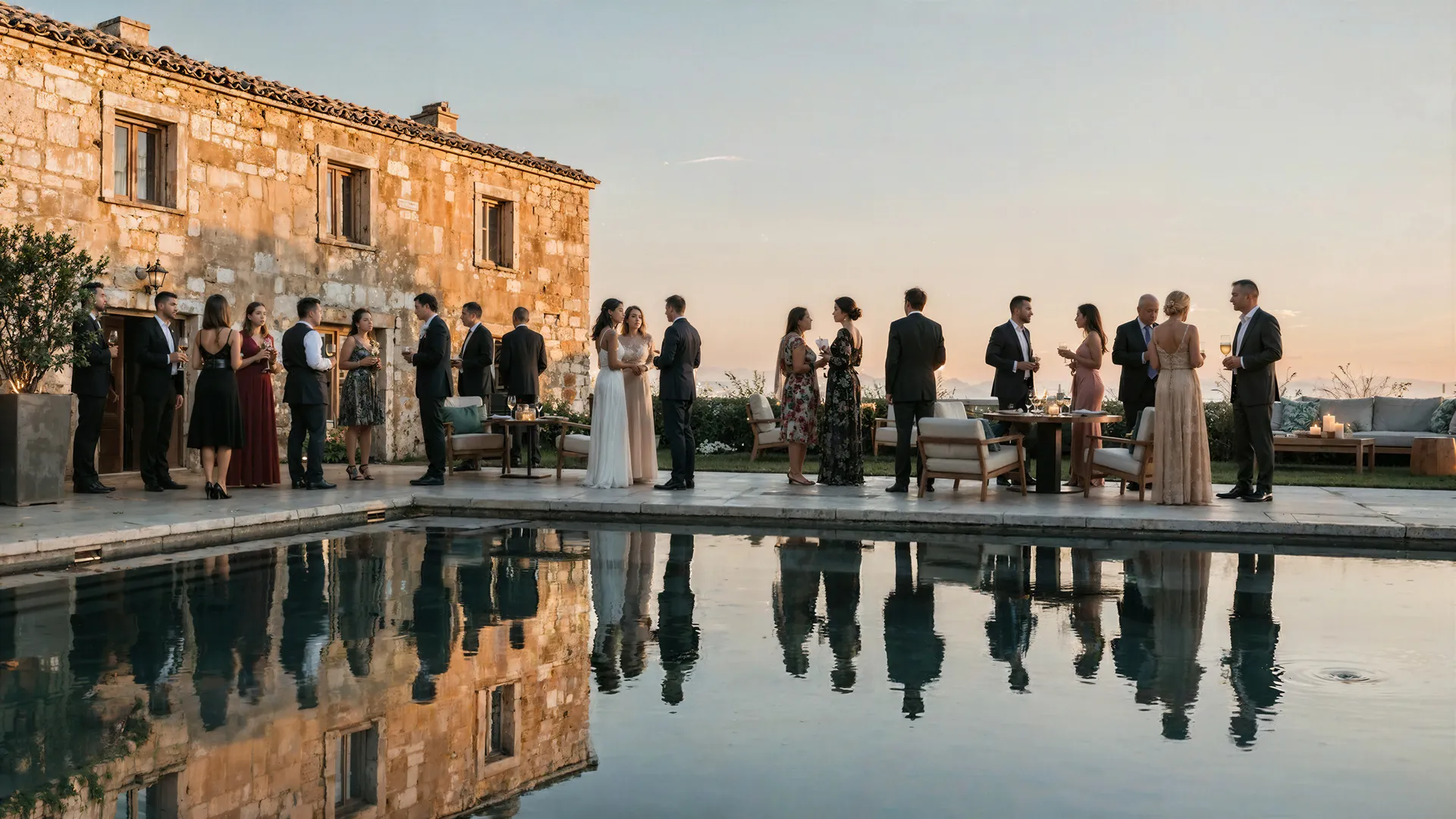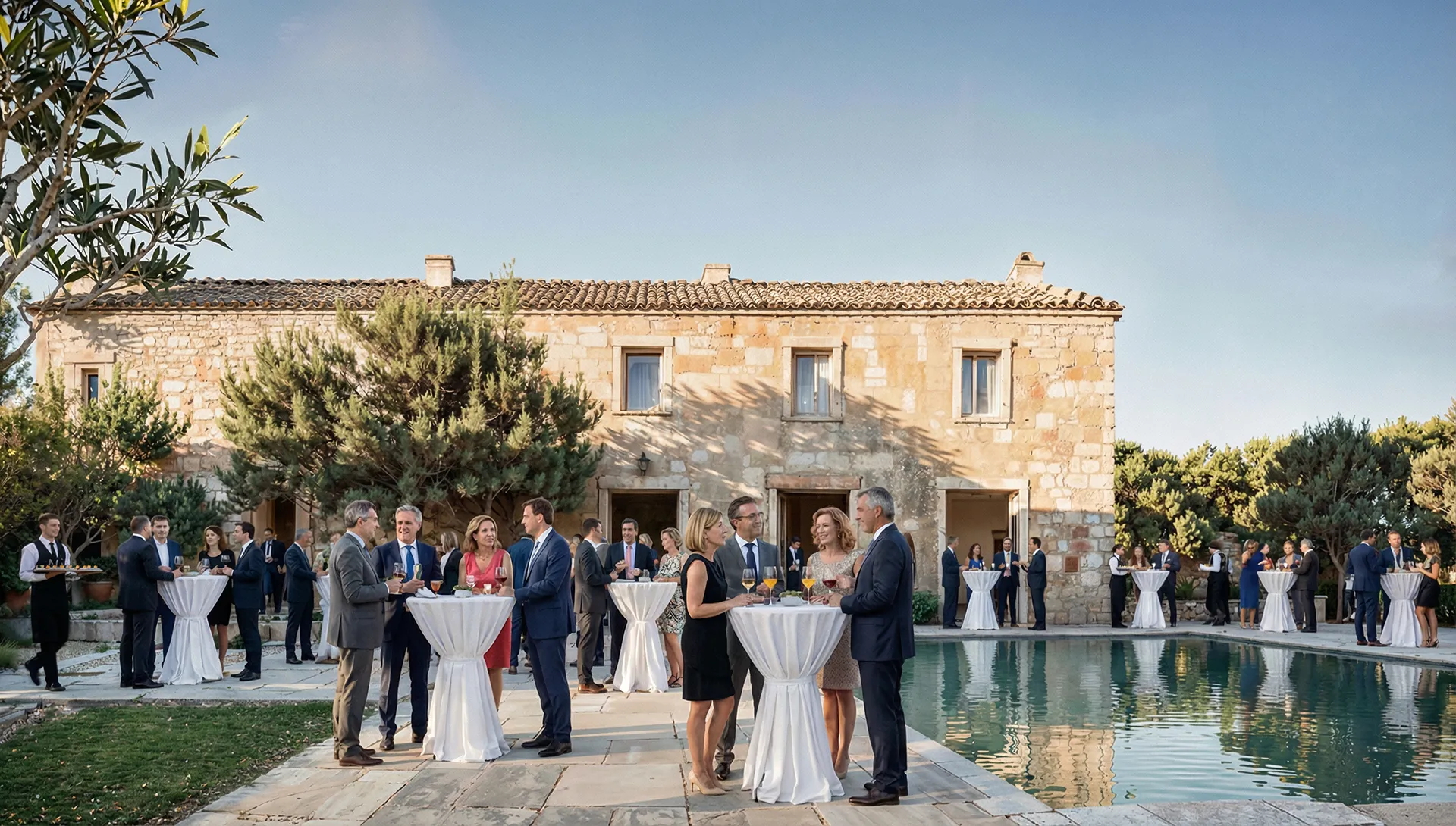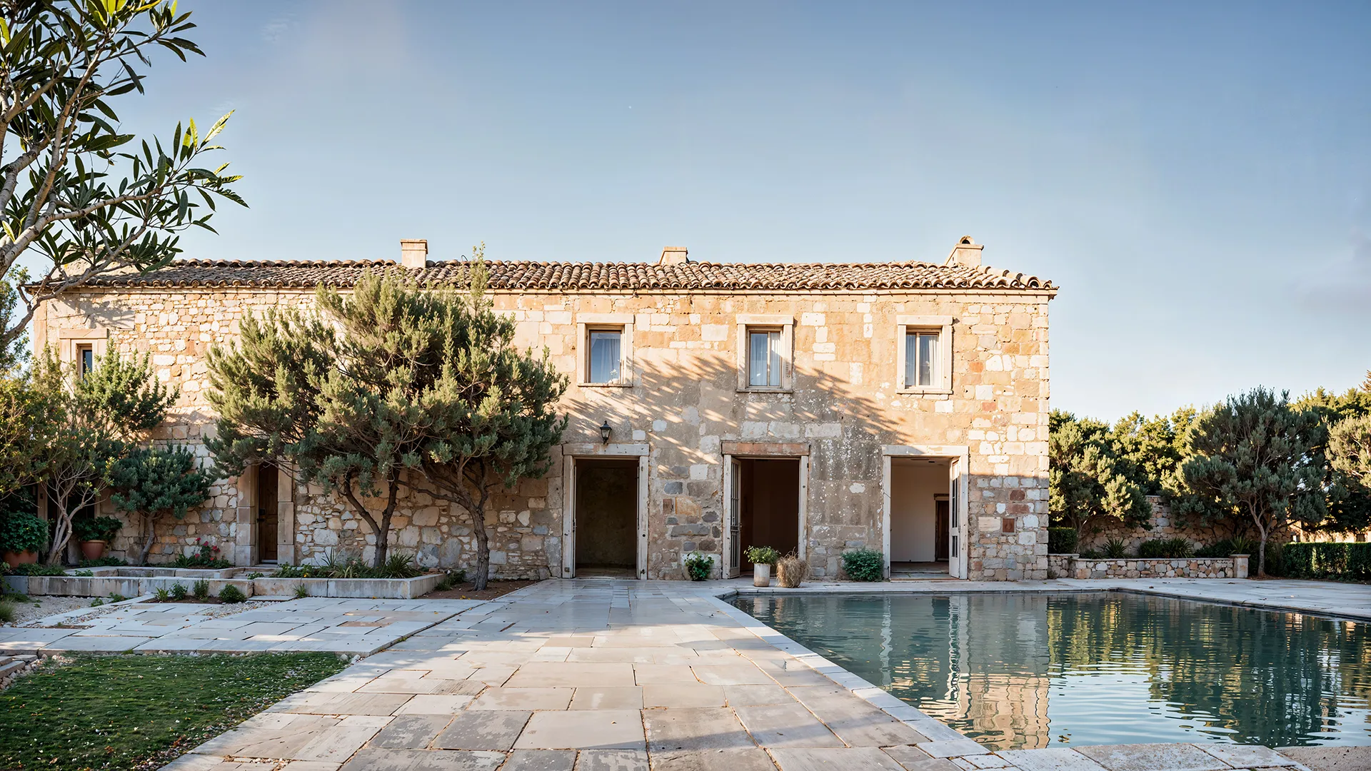 La actuación incluye la rehabilitación de fachadas y cubiertas, la renovación completa del patio y la piscina, y la adaptación del conjunto como espacio versátil para eventos, manteniendo el equilibrio entre memoria y contemporaneidad.